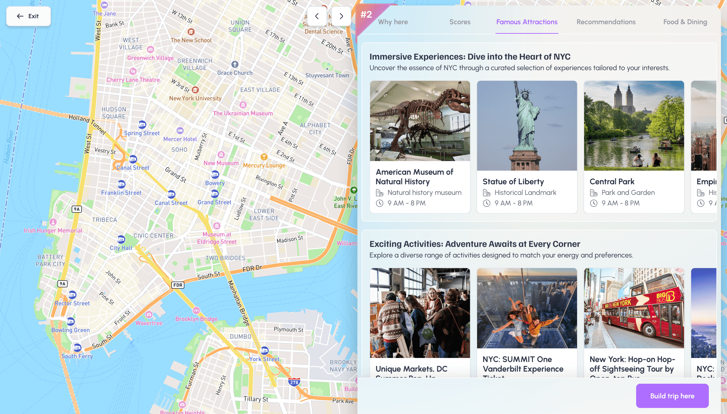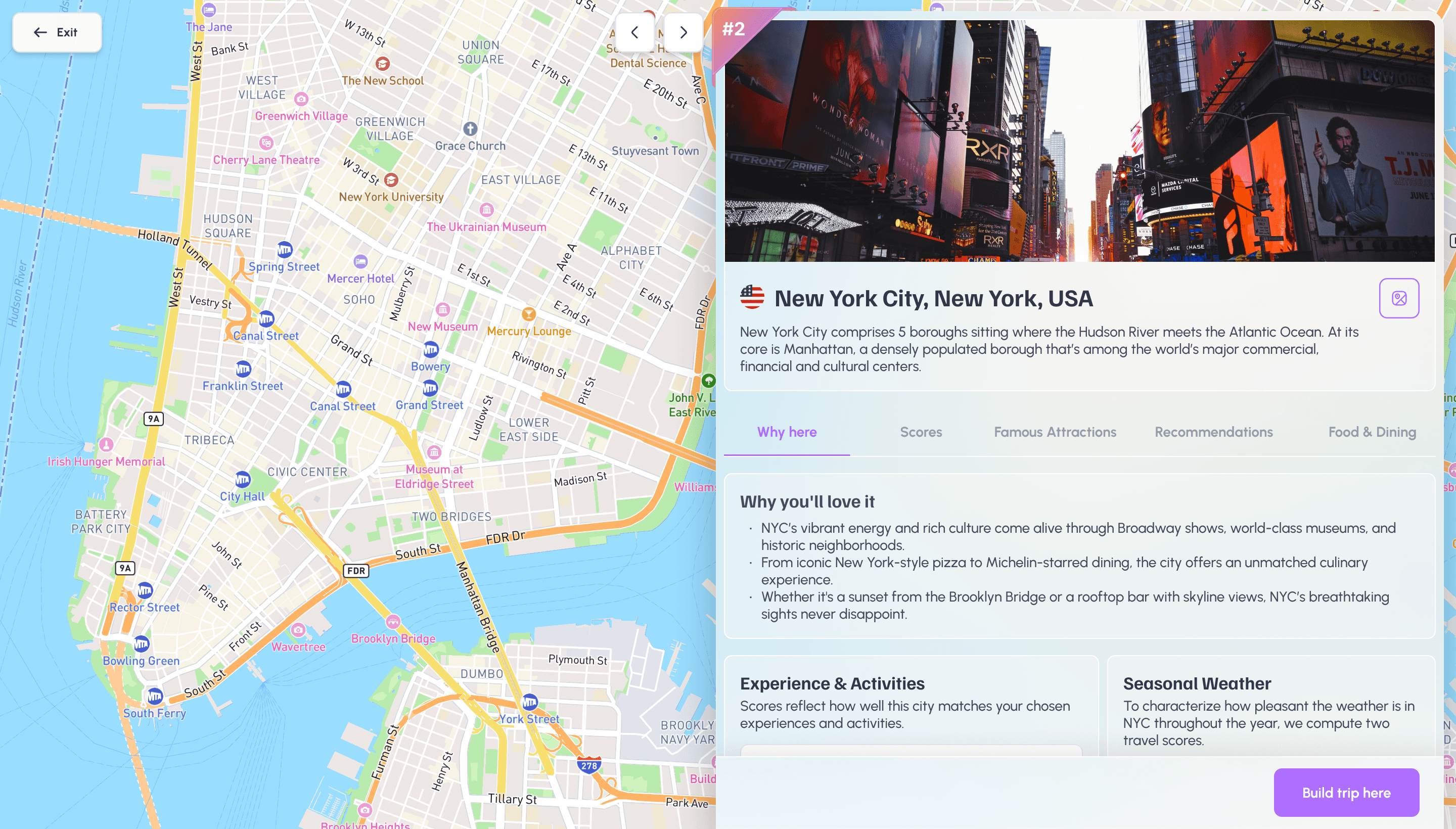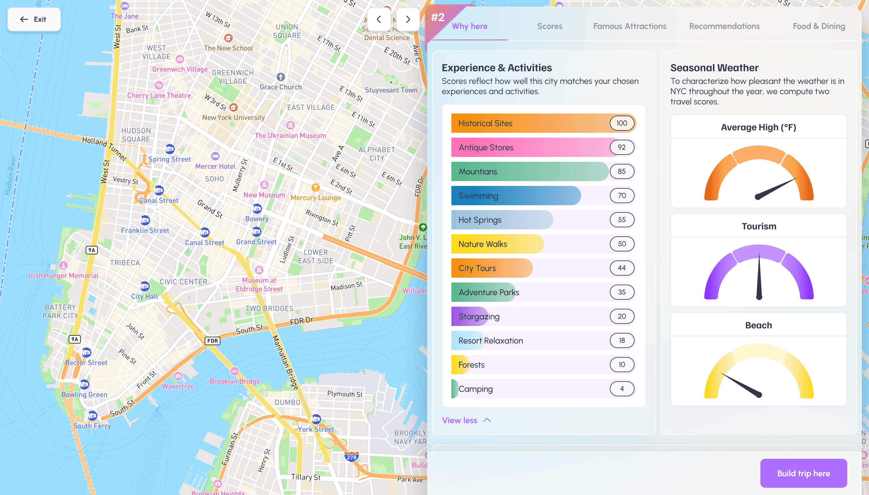 Based on these inputs, Intripid suggests travel destinations that fit the user’s needs. We provide: