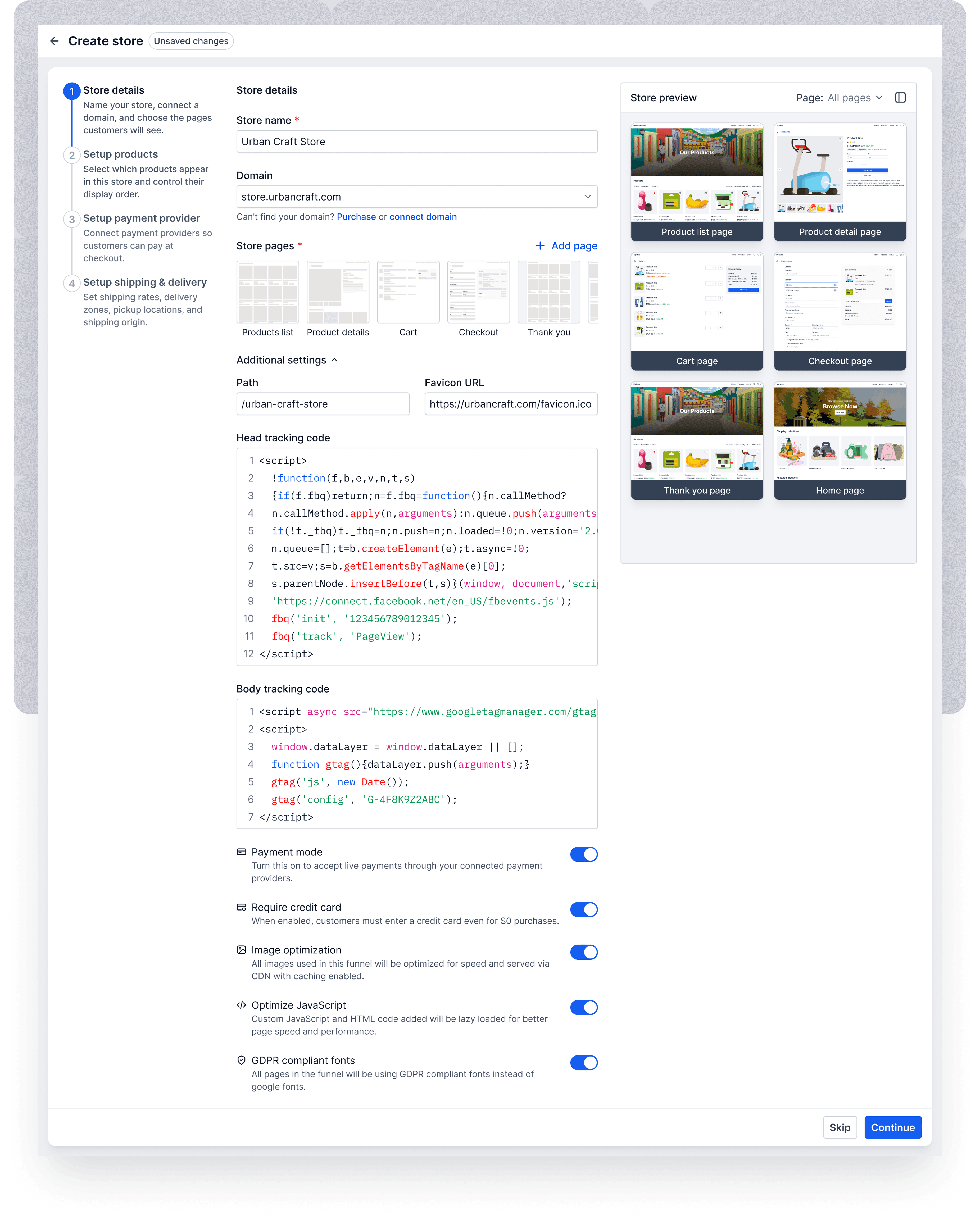 Step 2: Setup products